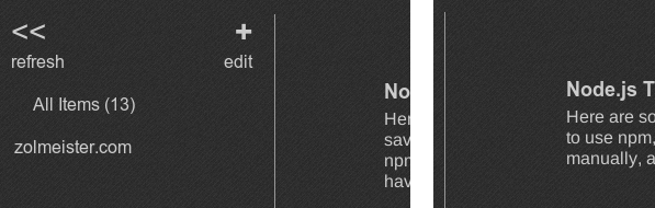As with my Google Reader app ZFeed, instead of relying on unreliable RSS feed data, I fetch a summary of each article using the embed.ly api. This way I can read the title and summary of an article before I make the decision to commit time to reading the whole thing.