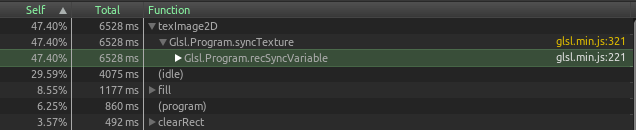 Looking to optimize the game more (for mobile devices for example), there is still a pretty large bottleneck regarding the canvas-to-webgl texture conversion each frame.